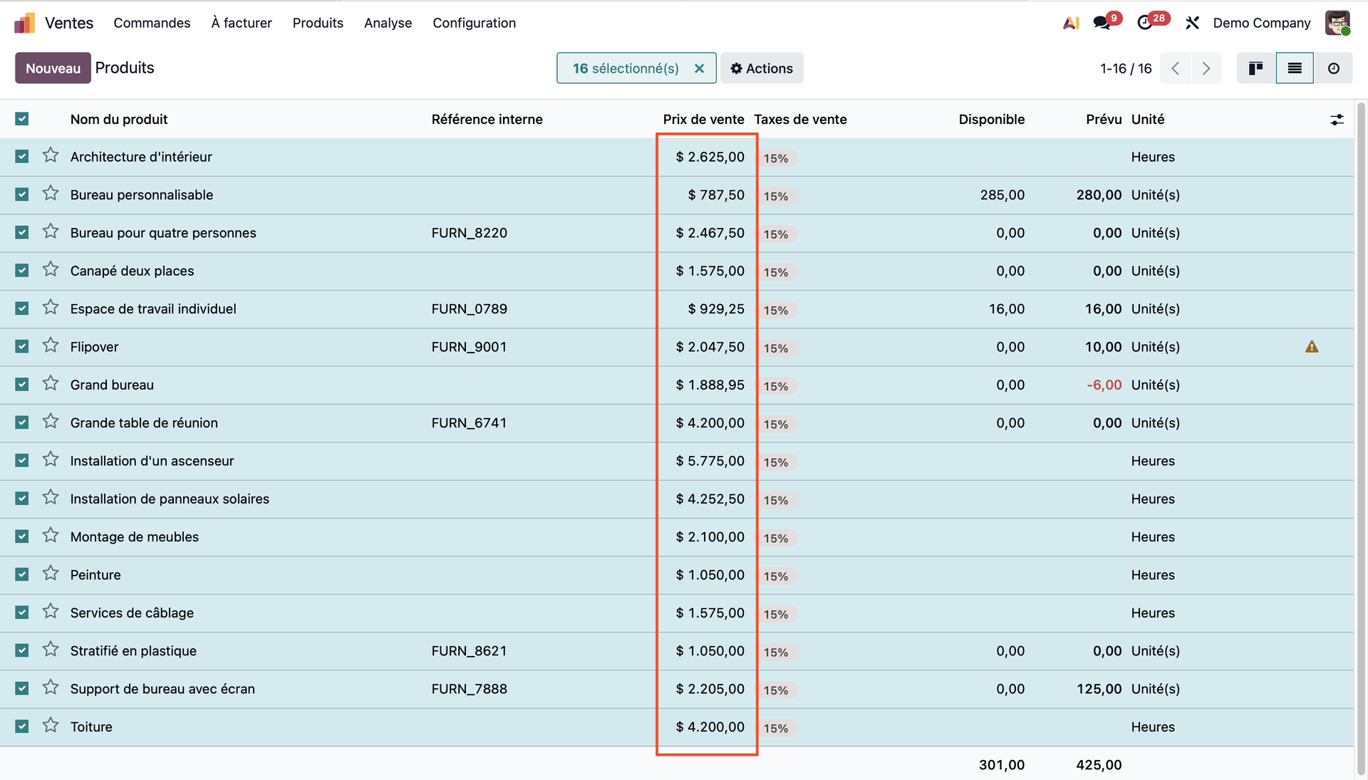 Il ne nous reste plus qu'à contempler le résultat : le prix de vente de notre sélection d'articles à bel et bien été mis à jour dans sa totalité !